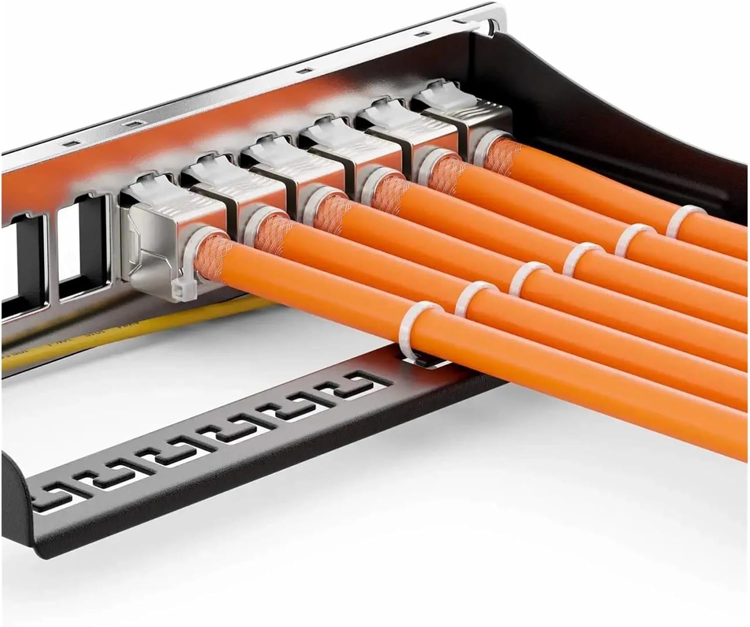 1U rack-mount patch panel, 12-port shielded computer room type panel with rear cable management rack(Black)