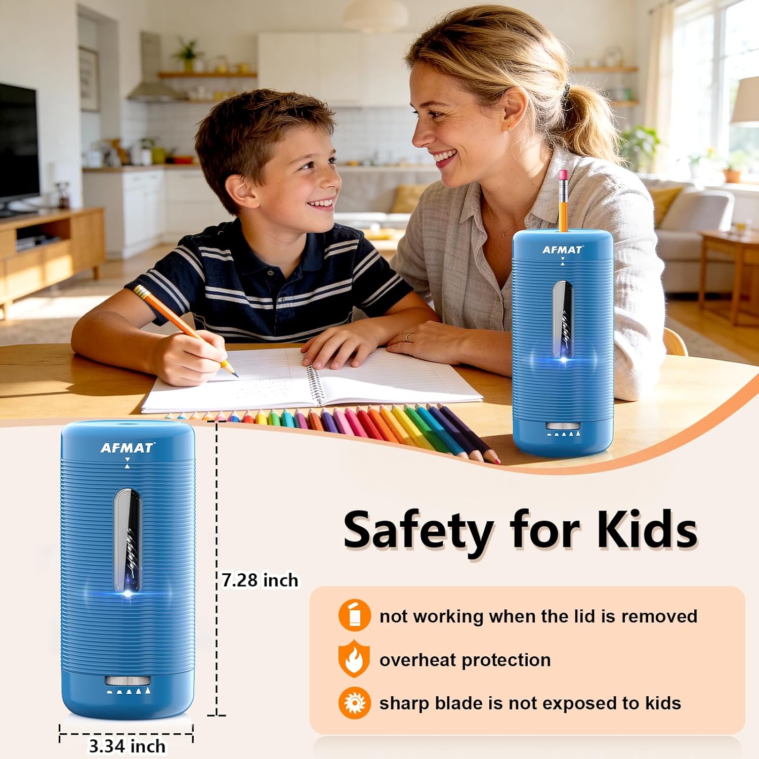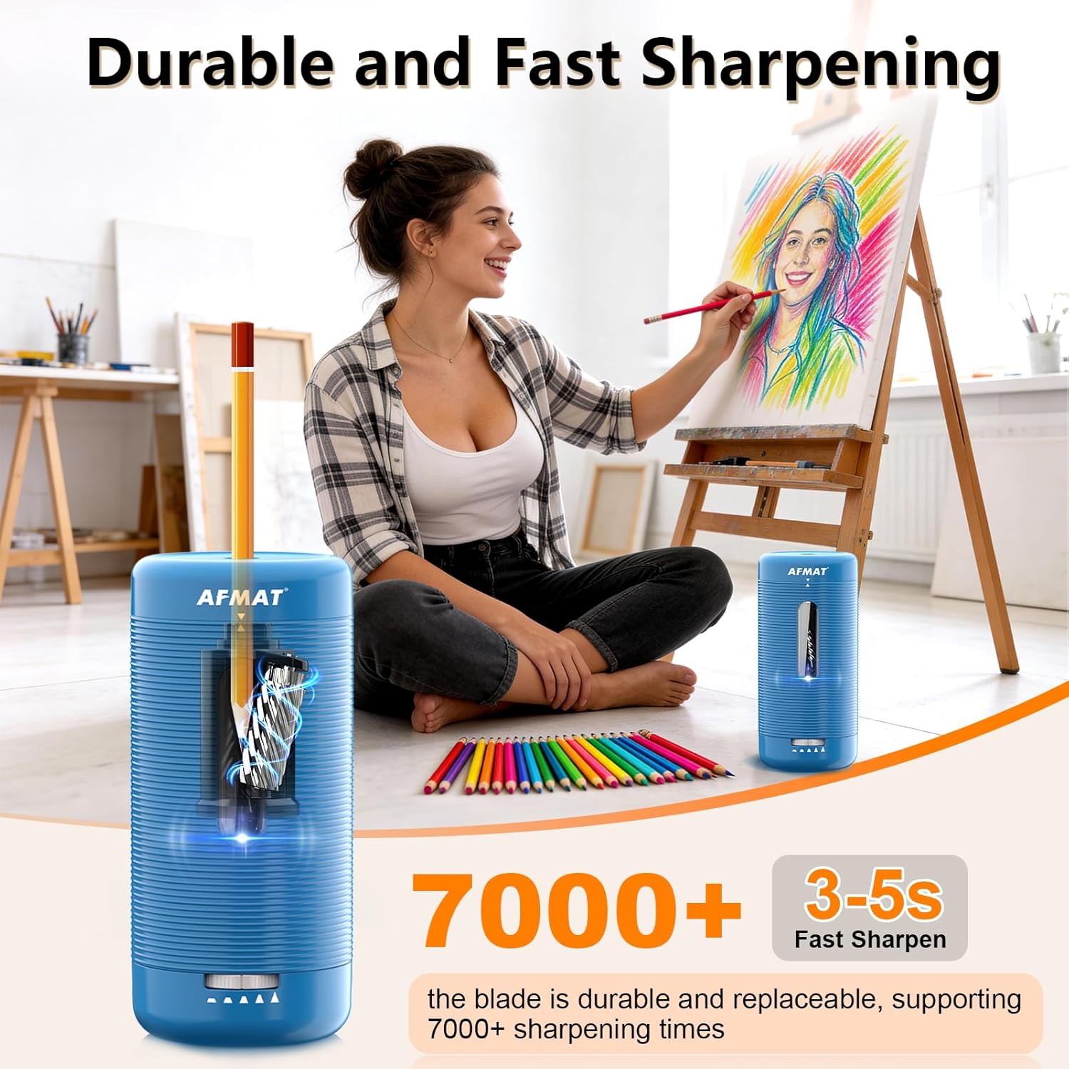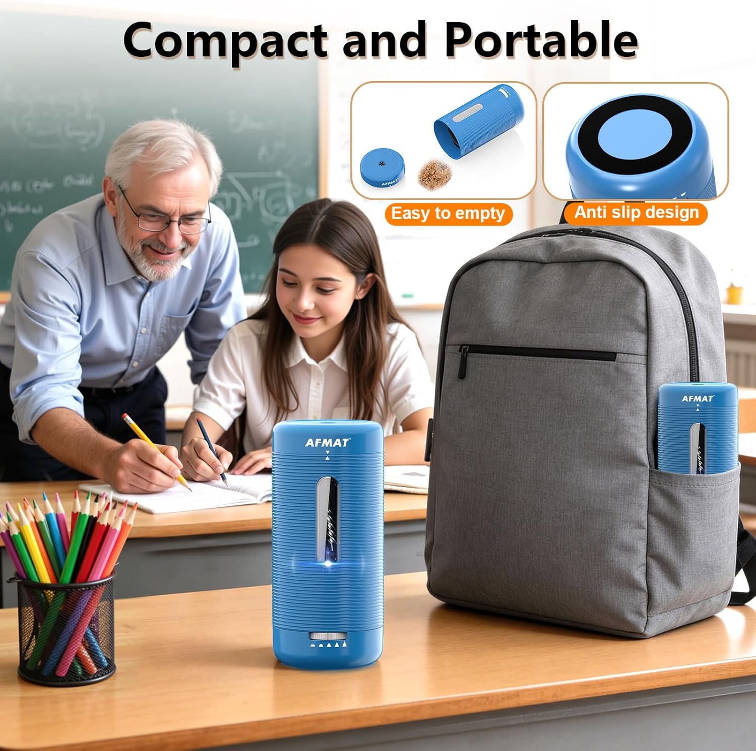 AFMAT Electric Pencil Sharpener, Fully Automatic Pencil Sharpener, Auto in & Out, Rechargeable Hands-Free Sharpeners for Jumbo & Colored Pencils (6.5-12mm), Portable for Home/Classroom/Office PSC2
