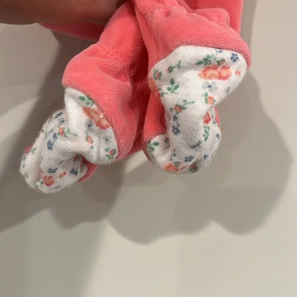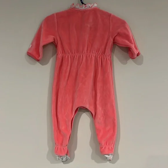 PETITE BATEAU Infant Girls 6mo Velour One Piece Footie Snap Front Ruffles Pink